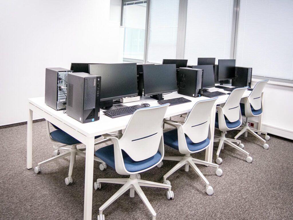 Oferujemy w pełni wyposazona, klimatyzowana sale z 37 stanowiskami komputerowymi, zaprojektowana z mysla o najwyzszym komforcie pracy i efektywnosci nauki. Przestrzen ta jest idealnie przystosowana do prowadzenia szkolen technicznych, kursów programowania, e-sportu oraz egzaminów panstwowych.